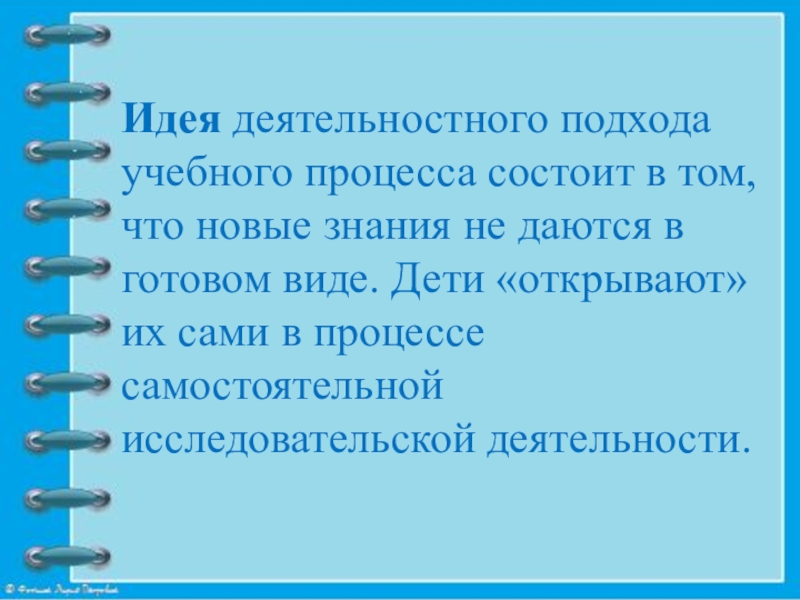 Идея деятельностного подхода учебного процесса состоит в том, что новые знания