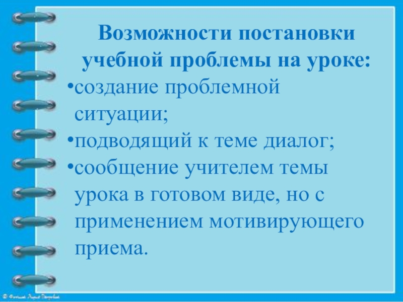 Слайд 14Возможности постановки учебной проблемы на уроке: