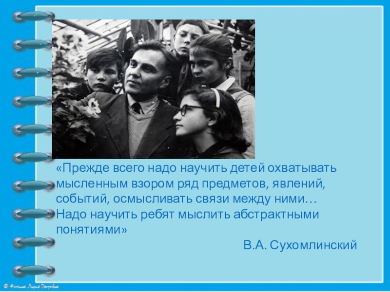 Слайд 11«Прежде всего надо научить детей охватывать мысленным взором ряд предметов, явлений,