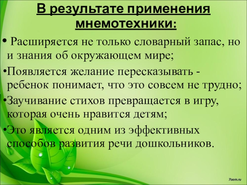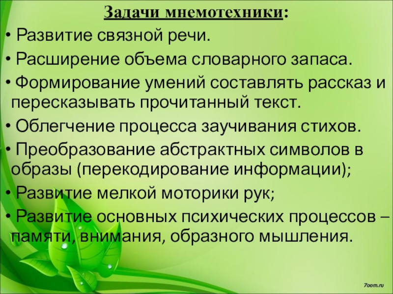 Мнемотехника- это система методов и приемов, обеспечивающих эффективное запоминание, сохранение и воспроизведения информации.