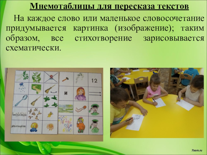 с детьми дошкольного возраста, имеющими нарушения речи через использование мнемотаблиц»