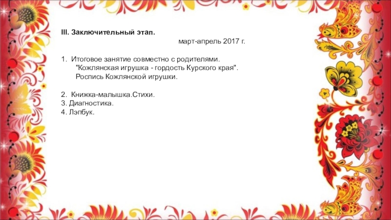 Слайд 8III. Заключительный этап.