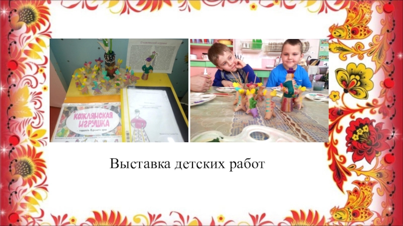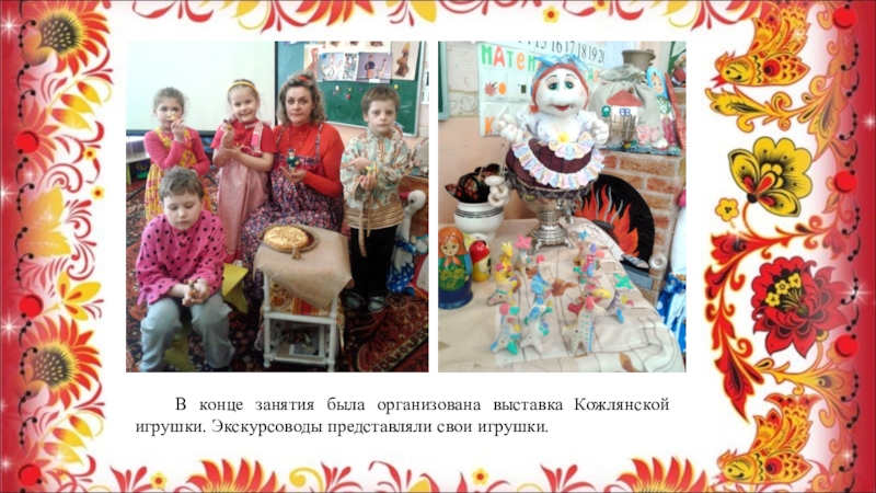Слайд 19 В конце занятия была организована выставка Кожлянской игрушки. Экскурсоводы представляли