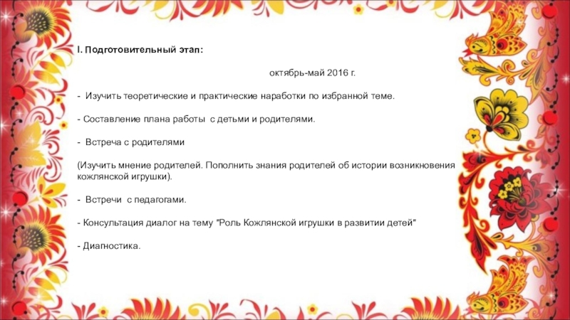 Слайд 6I. Подготовительный этап: