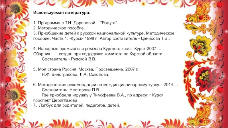 4. Народные промыслы и ремёсла Курского края. -Курск-2007 г.. Сборник создан при поддержке комитета по Курской области.