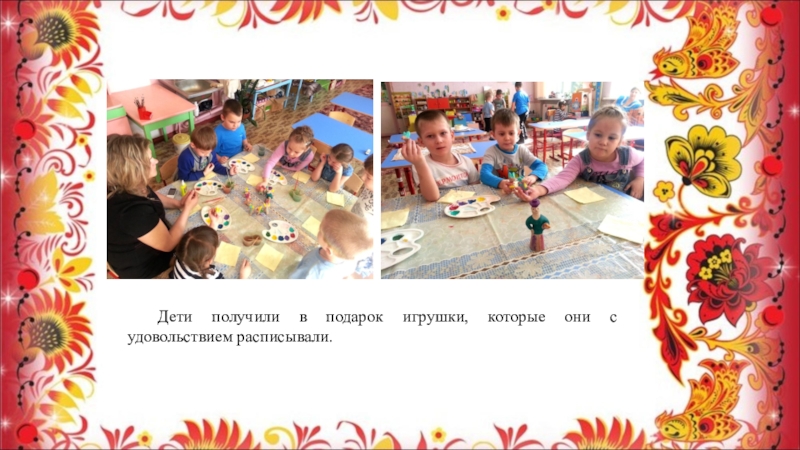 Слайд 16 Дети получили в подарок игрушки, которые они с удовольствием расписывали.