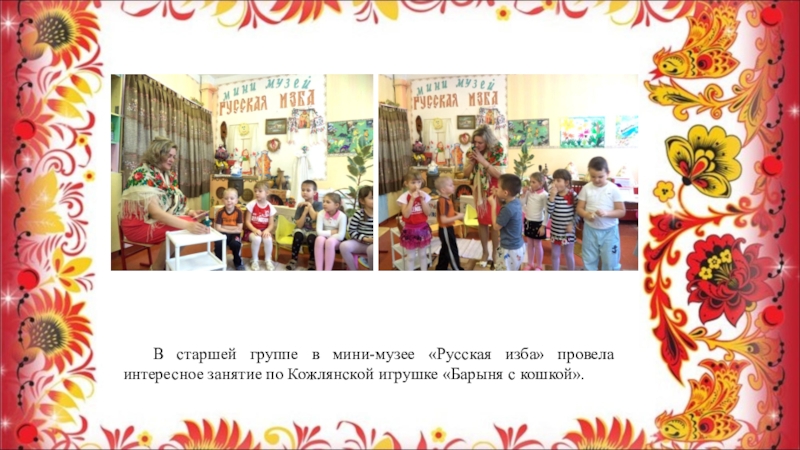 Слайд 15 В старшей группе в мини-музее «Русская изба» провела интересное занятие по