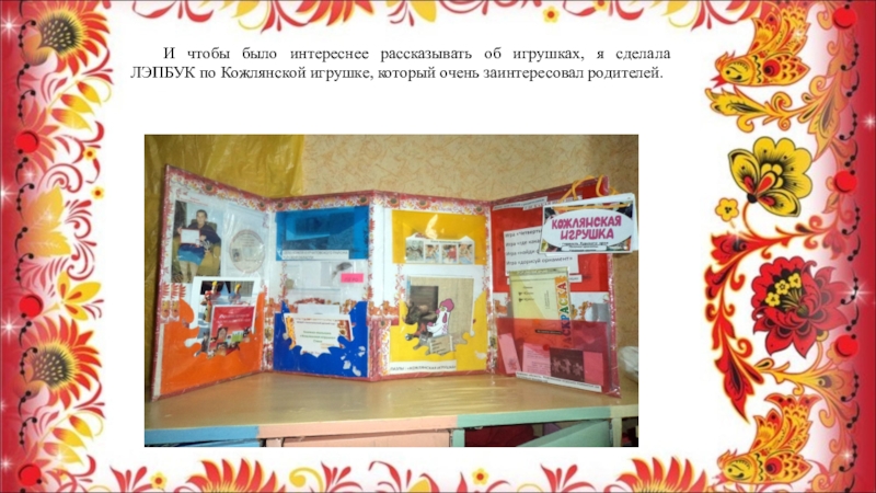 Слайд 20 И чтобы было интереснее рассказывать об игрушках, я сделала ЛЭПБУК по