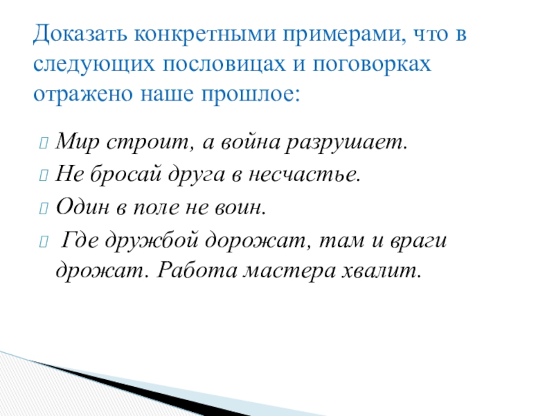 Доказать конкретными примерами, что в следующих пословицах и поговорках отражено наше прошлое: