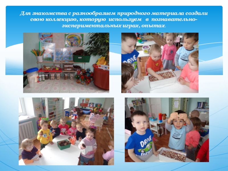 Слайд 15Для знакомства с разнообразием природного материала создали свою коллекцию, которую используем
