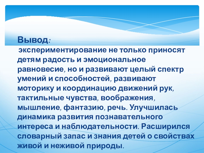 экспериментирование не только приносят детям радость и эмоциональное равновесие, но