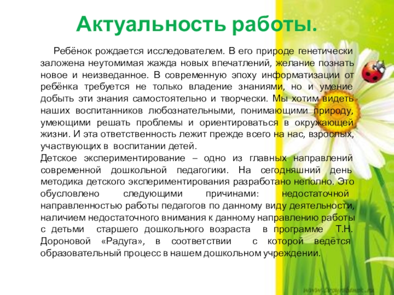познавательного интереса у детей старшего дошкольного возраста при ознакомлении с неживой природой».