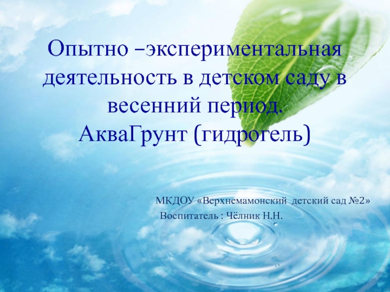 Воспитатель : Чёлник Н.Н.