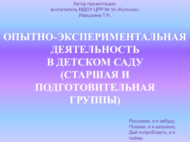 воспитатель МДОУ ЦРР № 50 «Колосок»