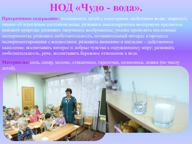 Материалы: соль, сахар, молоко, стаканчики, тарелочки, соломинки, ложки (по числу детей).