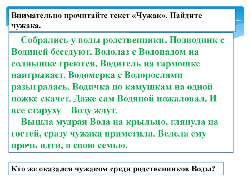 Внимательно прочитайте текст «Чужак». Найдите чужака.
