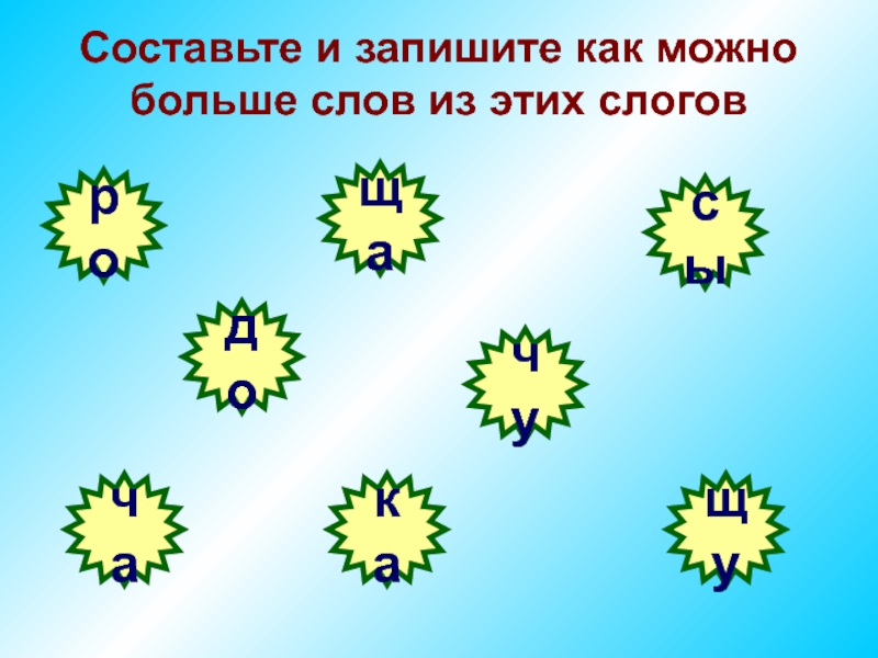 Составьте и запишите как можно больше слов из этих слоговродочащакачусыщу