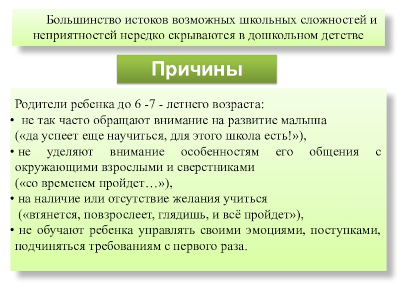 Большинство истоков возможных школьных сложностей и неприятностей нередко скрываются в дошкольном детстве