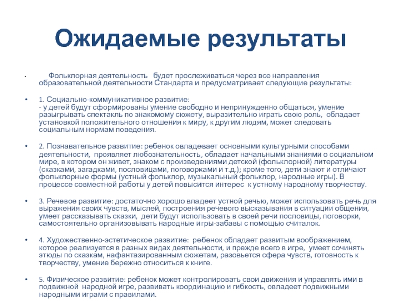 4. Приобщение к фольклору осуществляется через все виды деятельности: познавательную, игровую, музыкальную, изобразительную, физическую
