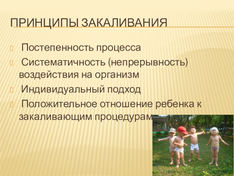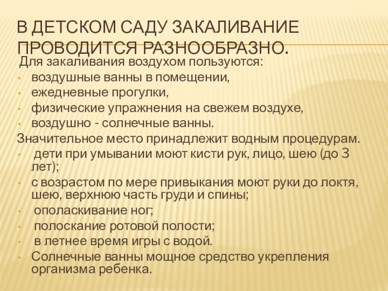 Слайд 26В детском саду закаливание проводится разнообразно.