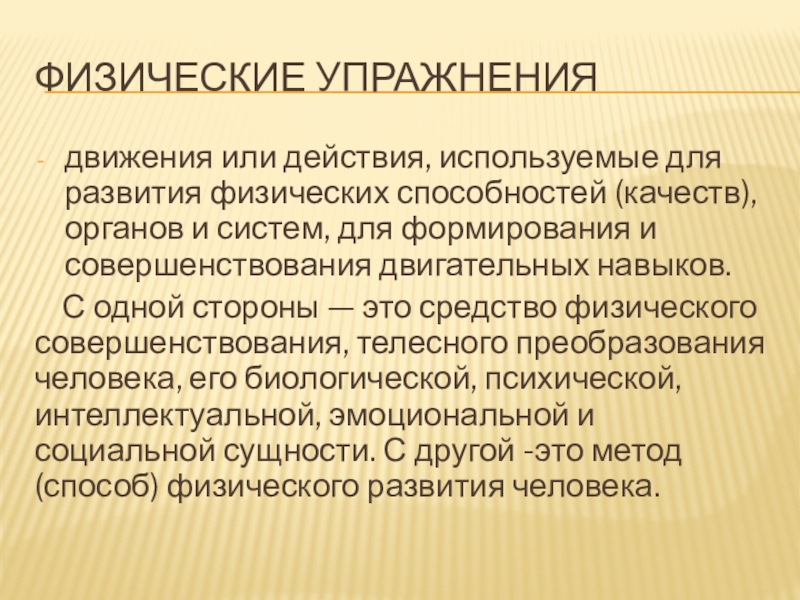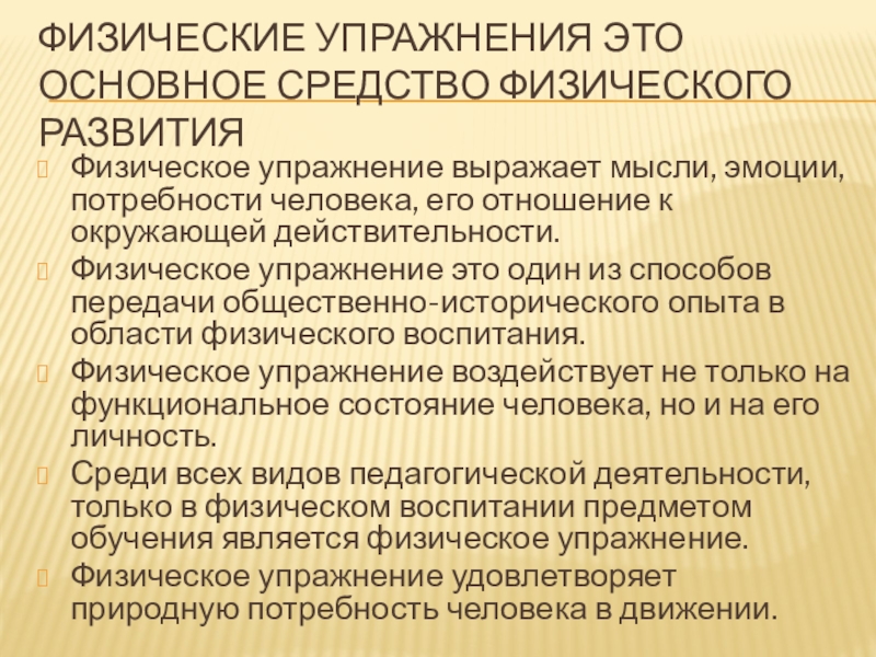 Физическое упражнение это один из способов передачи общественно-исторического опыта в области физического воспитания.