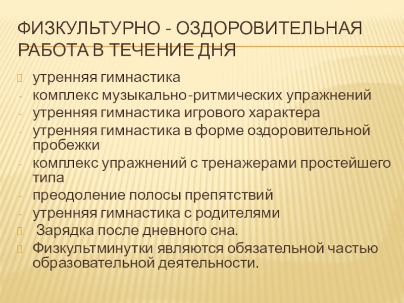 Слайд 13Физкультурно - оздоровительная работа в течение дня