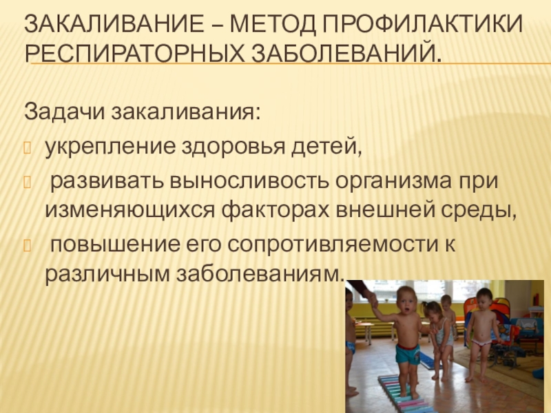 Слайд 24Закаливание – метод профилактики респираторных заболеваний.