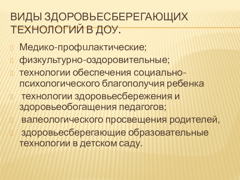 Слайд 20Виды здоровьесберегающих технологий в ДОУ.