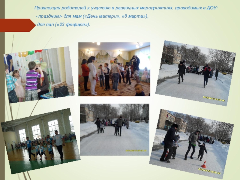 Слайд 17Привлекали родителей к участию в различных мероприятиях, проводимых в ДОУ:
