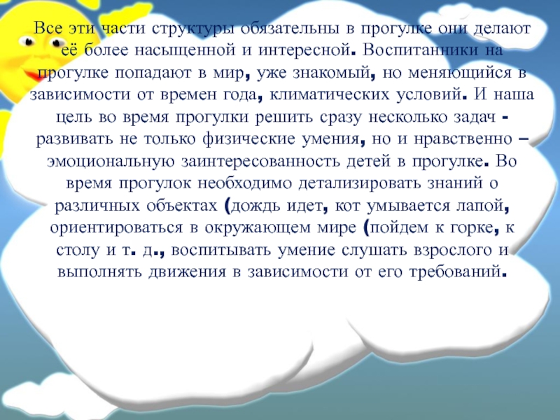 Прогулка – очень важный режимный момент жизнедеятельности детей в детском саду