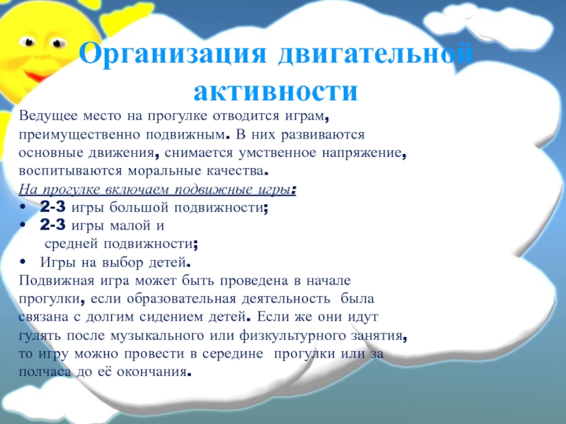 Двигательная активность: подвижные, спортивные игры, спортивные упражнения