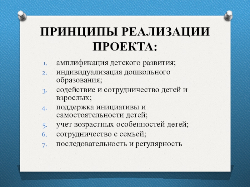 Слайд 9ПРИНЦИПЫ РЕАЛИЗАЦИИ ПРОЕКТА: