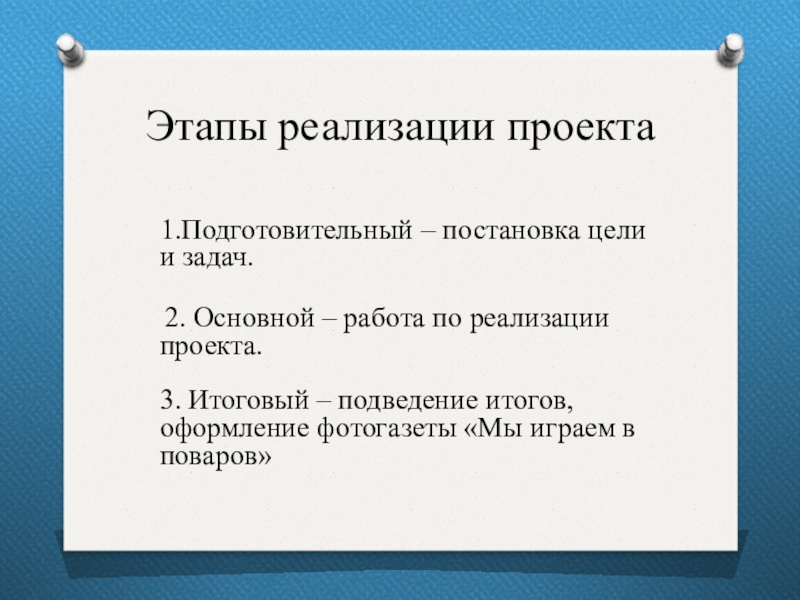 3. Итоговый – подведение итогов, оформление фотогазеты «Мы играем в поваров»