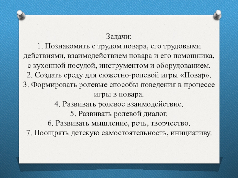 1. Познакомить с трудом повара, его трудовыми действиями, взаимодействием повара и