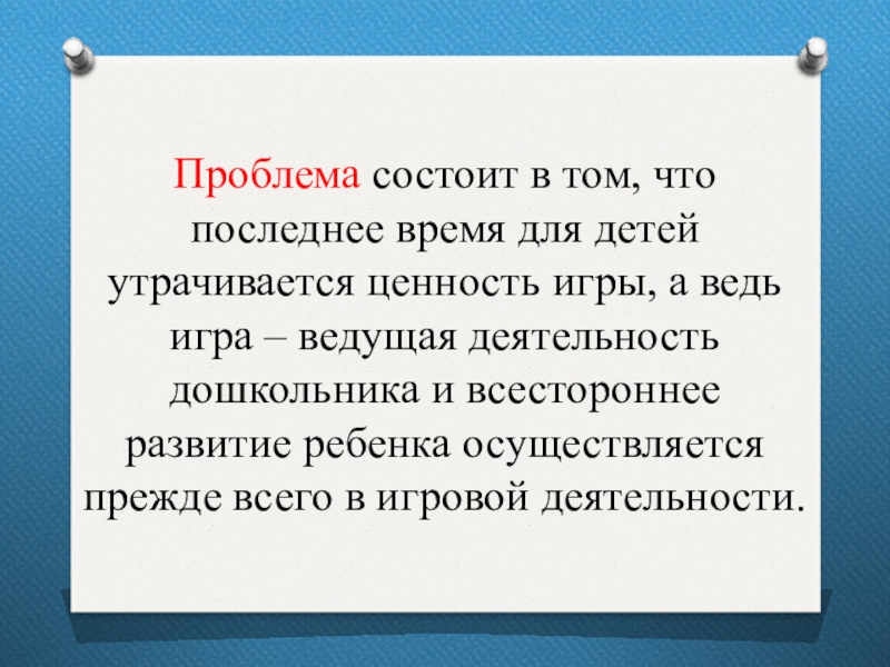 Слайд 6Проблема состоит в том, что последнее время для детей утрачивается ценность