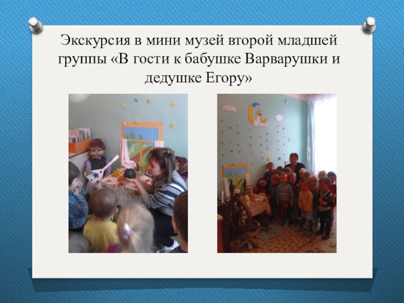 Слайд 17Экскурсия в мини музей второй младшей группы «В гости к бабушке