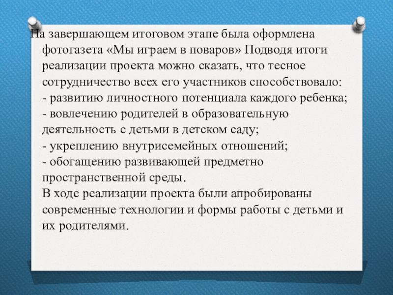 Слайд 32На завершающем итоговом этапе была оформлена фотогазета «Мы играем в поваров»
