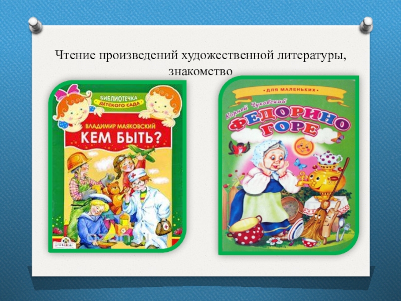 Слайд 20Чтение произведений художественной литературы, знакомство