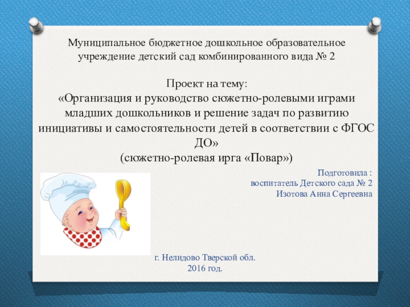 2. Создать среду для сюжетно-ролевой игры «Повар».