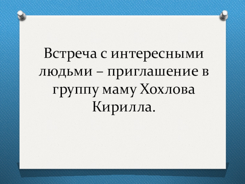 Слайд 23Встреча с интересными людьми – приглашение в группу маму Хохлова Кирилла.