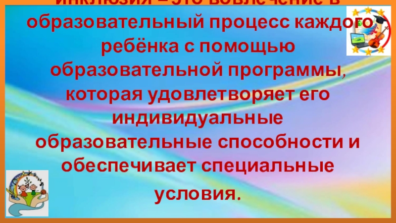 Слайд 3инклюзия – это вовлечение в образовательный процесс каждого ребёнка с помощью