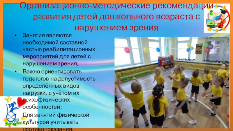Слайд 13Организационно-методические рекомендации развития детей дошкольного возраста с нарушением зрения