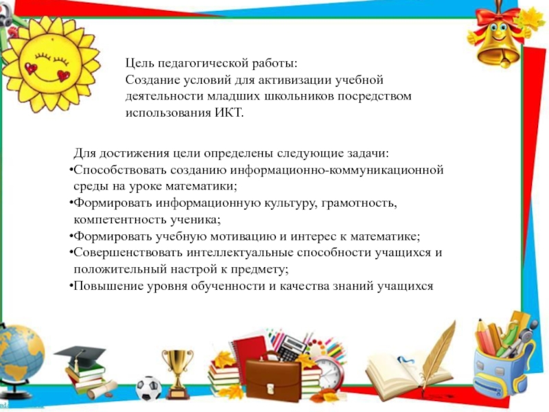 Способствовать созданию информационно-коммуникационной среды на уроке математики;