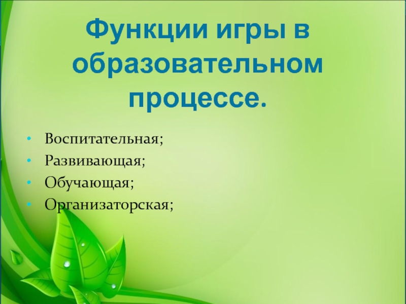 Слайд 5Функции игры в образовательном процессе.