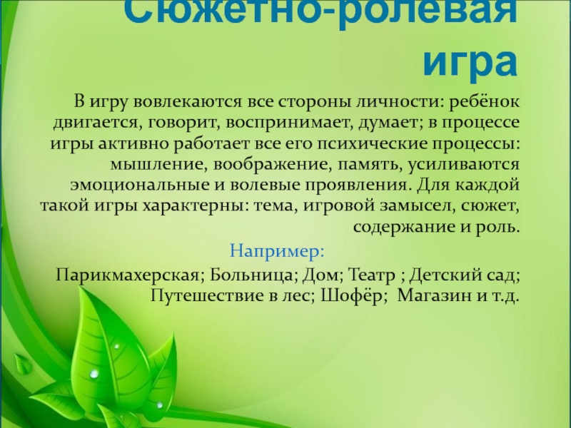 Слайд 9Сюжетно-ролевая игра