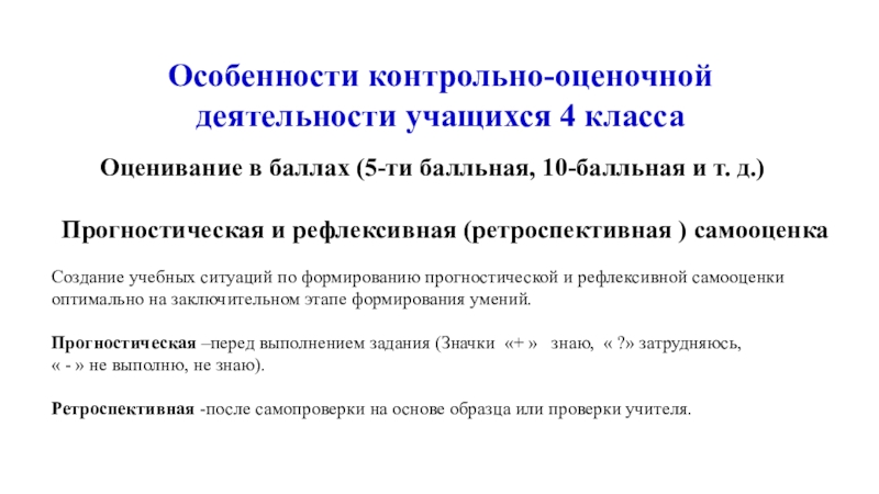 Прогностическая и рефлексивная (ретроспективная ) самооценка