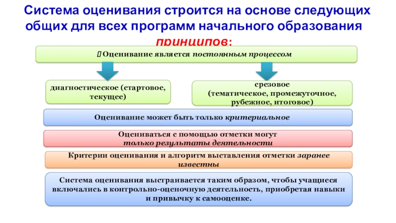 Система оценивания выстраивается таким образом, чтобы учащиеся включались в контрольно-оценочную деятельность, приобретая навыки и привычку к самооценке.