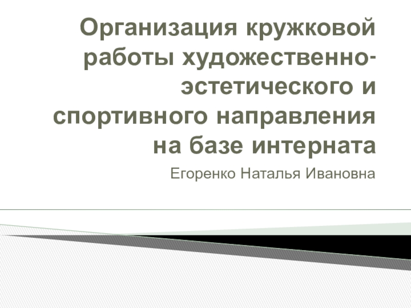 Организация кружковой работы художественно-эстетического и спортивного направления на базе интернатаЕгоренко Наталья Ивановна