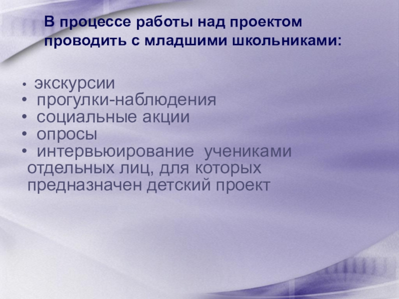 интервьюирование учениками отдельных лиц, для которых предназначен детский проект