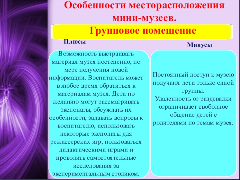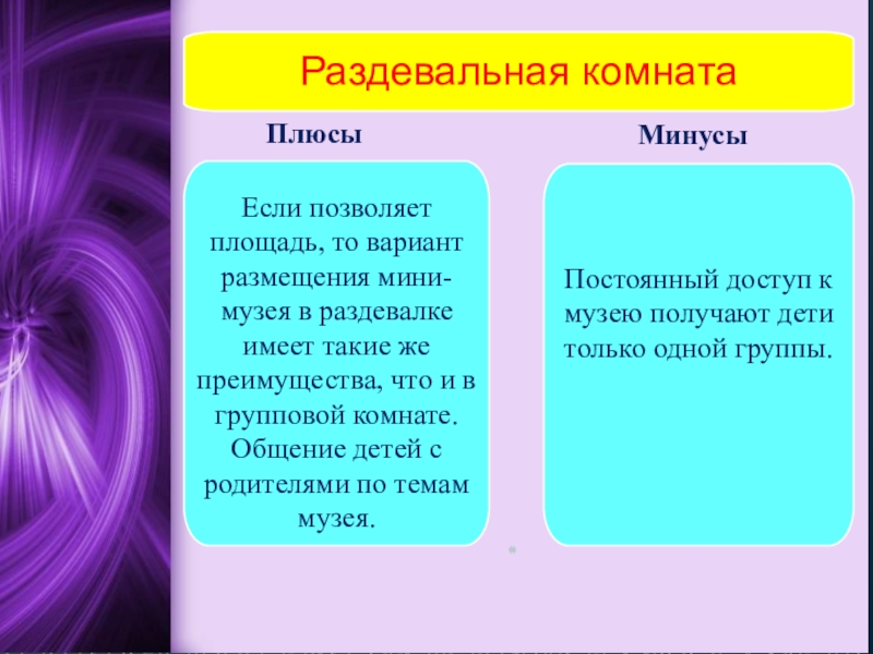 Удаленность от раздевалки ограничивает свободное общение детей с родителями по темам музея.